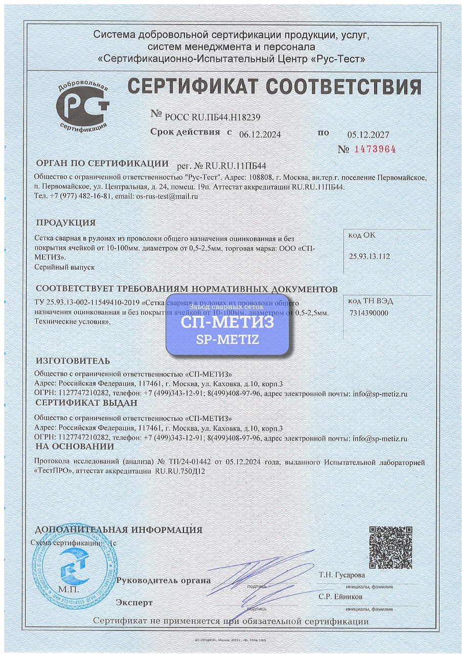 Вся сетка, которую мы производим, прошла тестирование на качество и соответствие государственным стандартам и мы с радостью готовы подтвердить это документально.