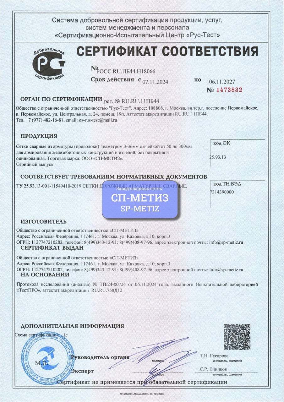| Сертификат ГОСТ 23279-12 СП-МЕТИЗ | |